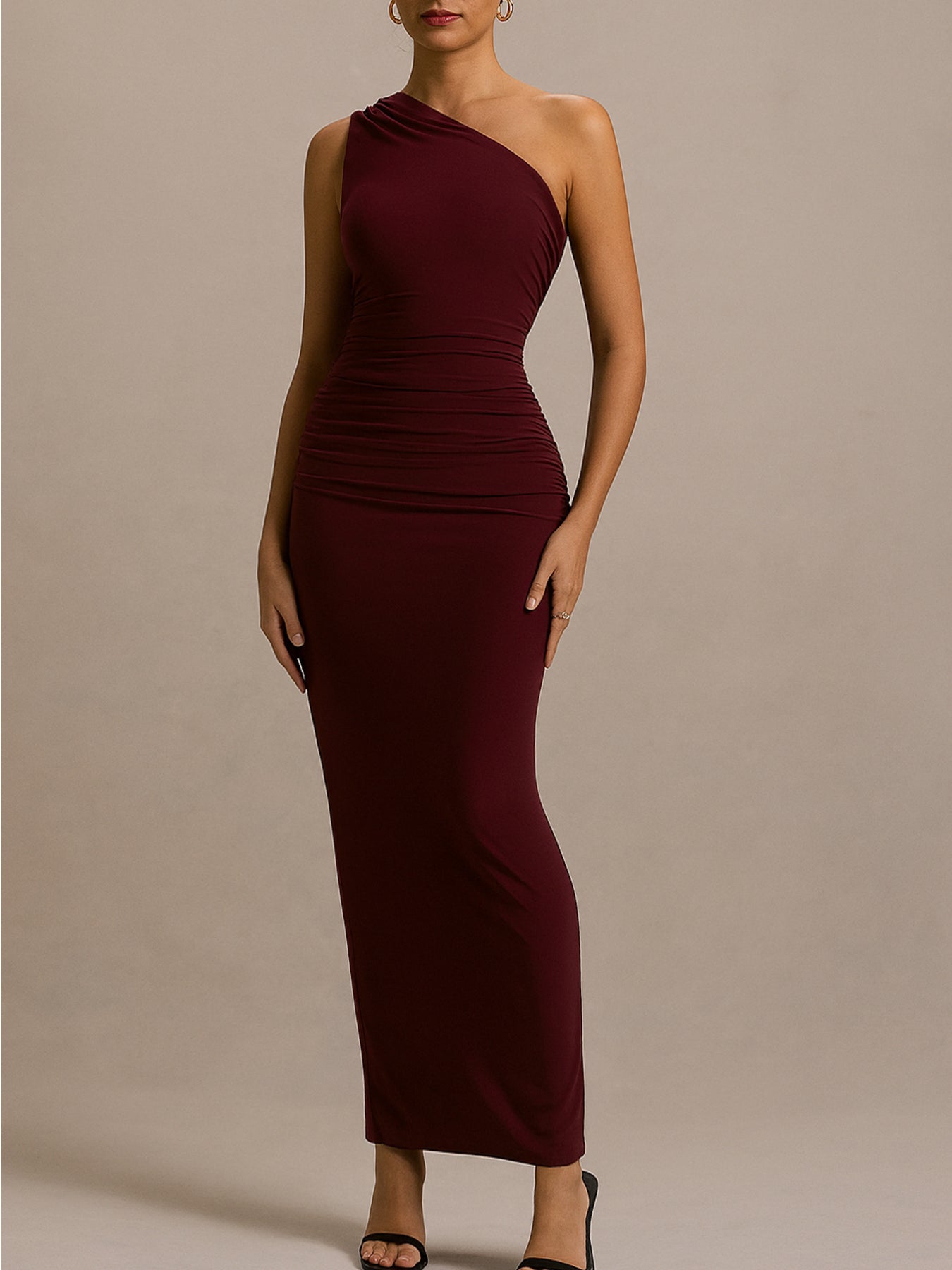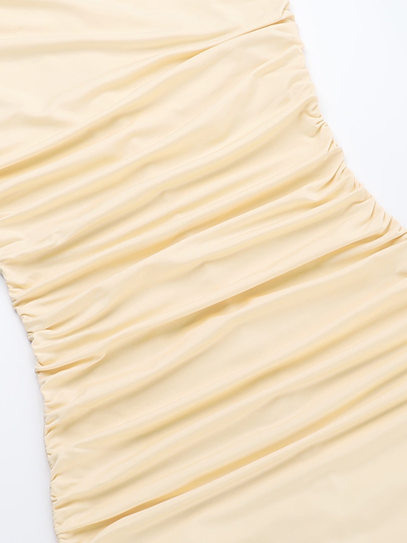 Details: Asymmetrical, Ruched, Slit