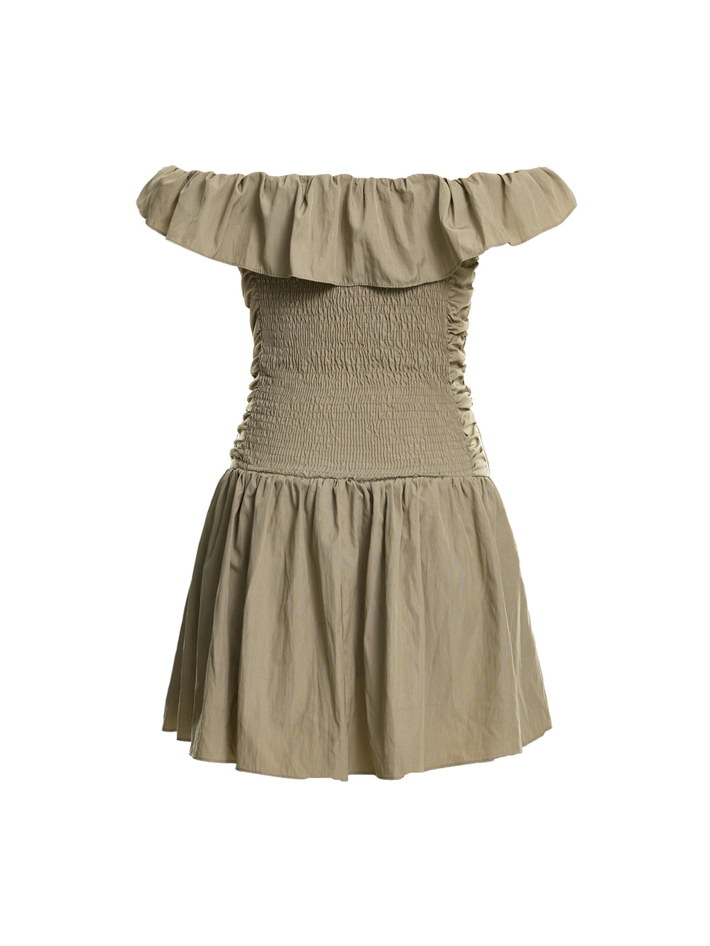 Casual Plain Draped Ruched Ruffle Off Shoulder Flounce Sleeve A Line Dresses